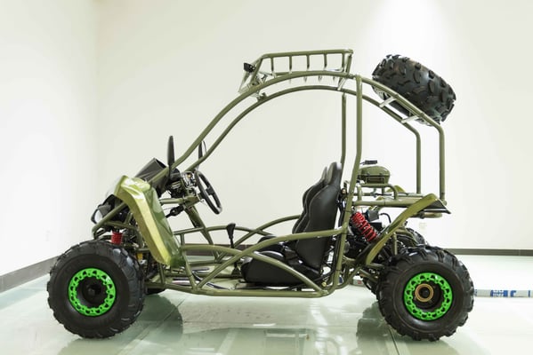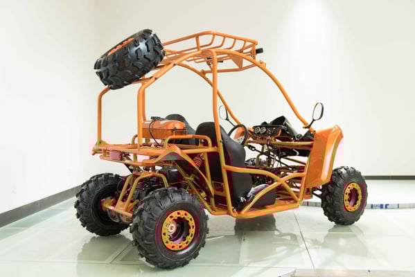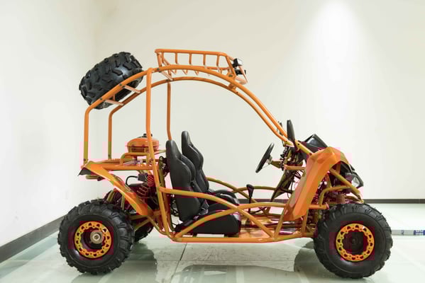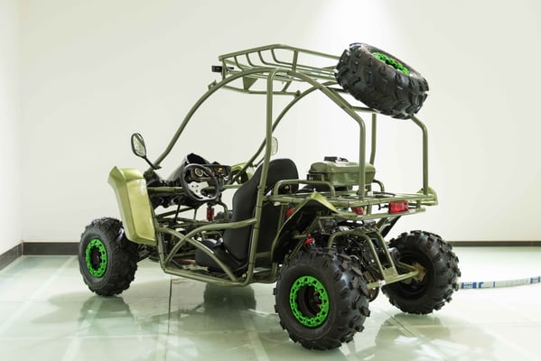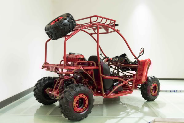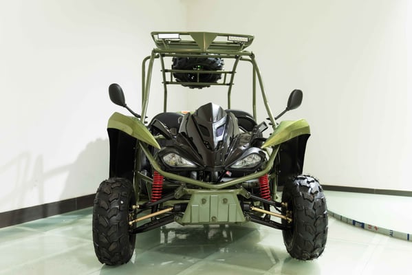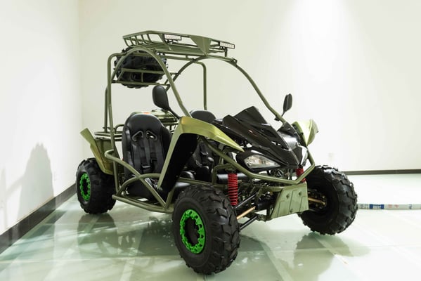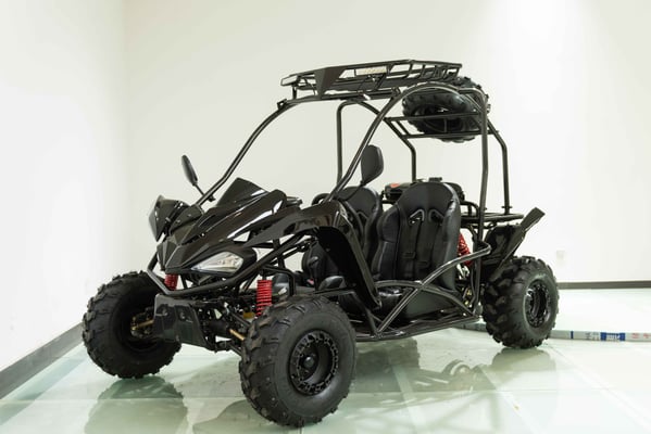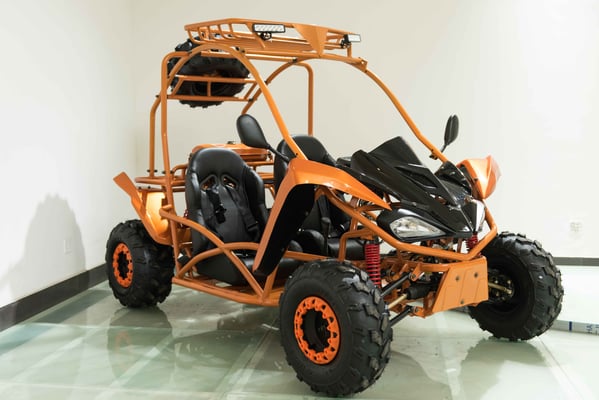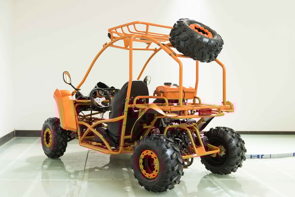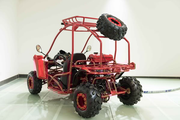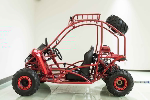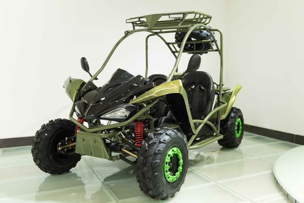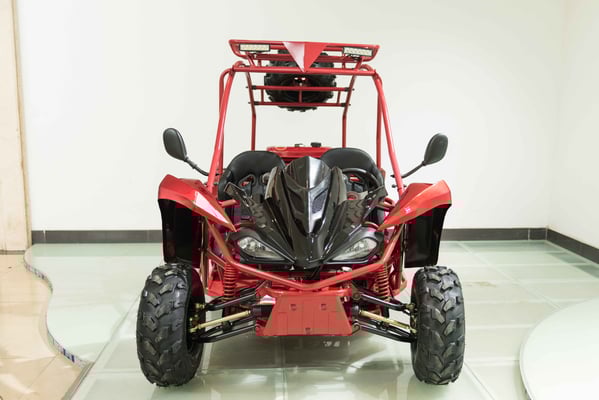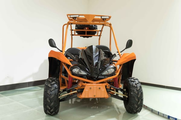 Single cylinder, forced air cooled, four stroke, overhead camshaft